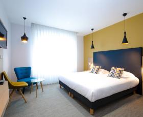 Les chambres et suites lumineuses et confortables, sont adaptées aux personnes à mobilité réduite. Elles sont équipées de l’air conditionné réglable, du wifi gratuit, d’un minibar, du room service, d’écrans plats 43″ (chaînes françaises et étrangères, connexion directe à votre compte Netflix). L’hôtel dispose également d’un espace de travail, d’une salle de jeux et d’une piscine aménagée, d’espaces de détente, d'un bar à vin et d'un spa.